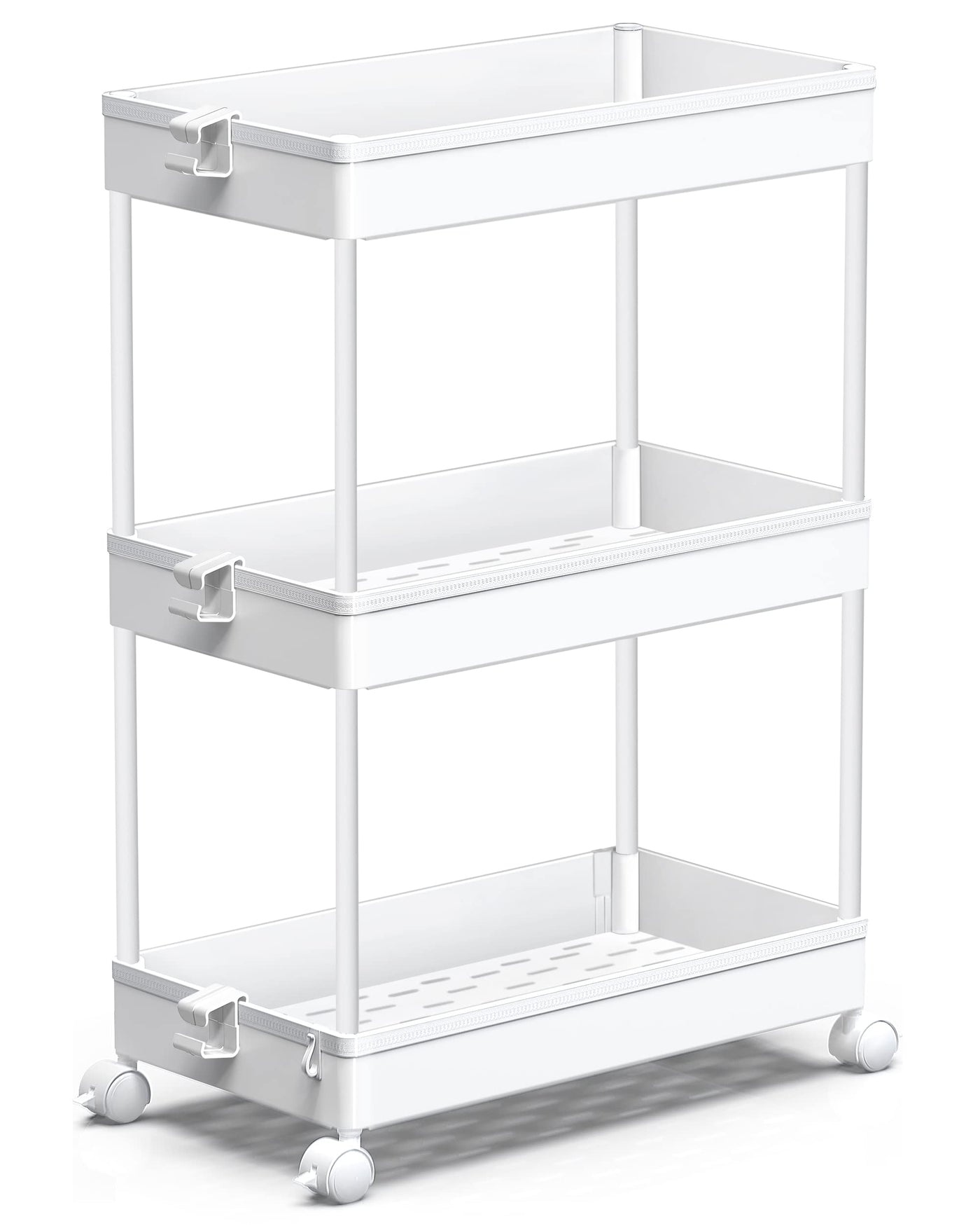3-Tier Slide Out Storage Cart Our multifunctional storage cart is suitable for narrow spaces,widely use for kitchen, bathroom, office, living room Creat Additional Storage Space Flexible 3-tier storage cart create additional storage in your kitchen, laundry room, bathroom, office, toilet, living room and any narrow places in the home. The wheels allow the storage cart to glide effortlessly for easy access, you can roll it easily anytime you need.