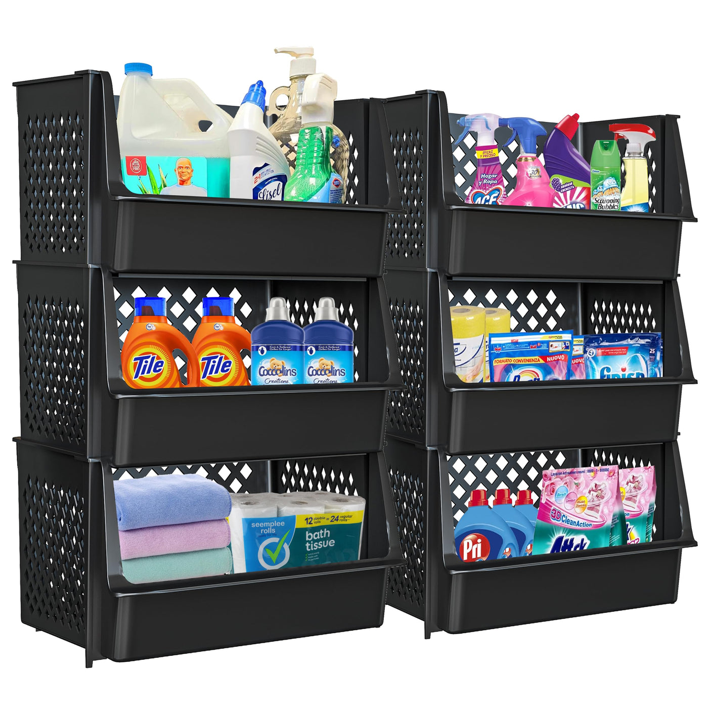 Tidyfriend Plastic Stackable Bins For Pantry, 6 Pack Large Stacking Bins Open Front Kitchen, And Bathroom Organization, Open Fro