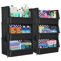 Save Space And Organize All Your Necessary Household Items With The Skywin Plastic Stackable Storage Bins For Pantry. The Product Includes Four Stackable And Color-Coded Storage Bins That Can Be Used To Store Pantry Items, Toiletries, And Other Small Household Essentials. You Can Classify And Segregate All Your Items And Use The Different Colors To Easily Identify Each Category. Comes In Blue, Green, Pink And Khaki Colors. Its Open Front Design Lets You Get The Contents Without Removing The Bins Placed On Top, While The Mesh Sides Allow Airflow And Ventilation To Keep The Contents Fresh. Effortlessly Organize Your Daily Household Items With The Skywin Plastic Stackable Storage Bins. Theyre So Light And Easy To Use, Even Kids Can Use Them