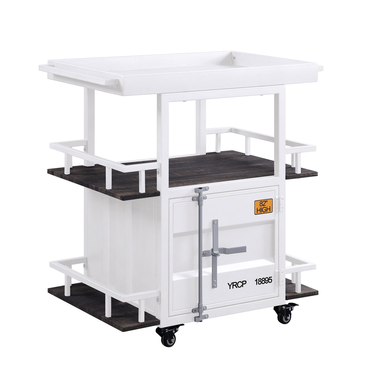 Acme Cargo 3-Shelf Metal Frame Serving Cart in Antique Walnut and White