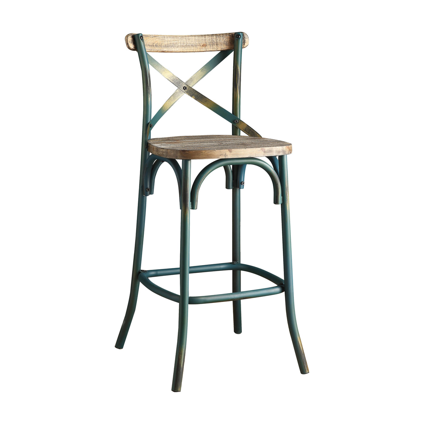 Acme Zaire Bar Stool with Wooden Seat in Antique Turquoise and Antique Oak
