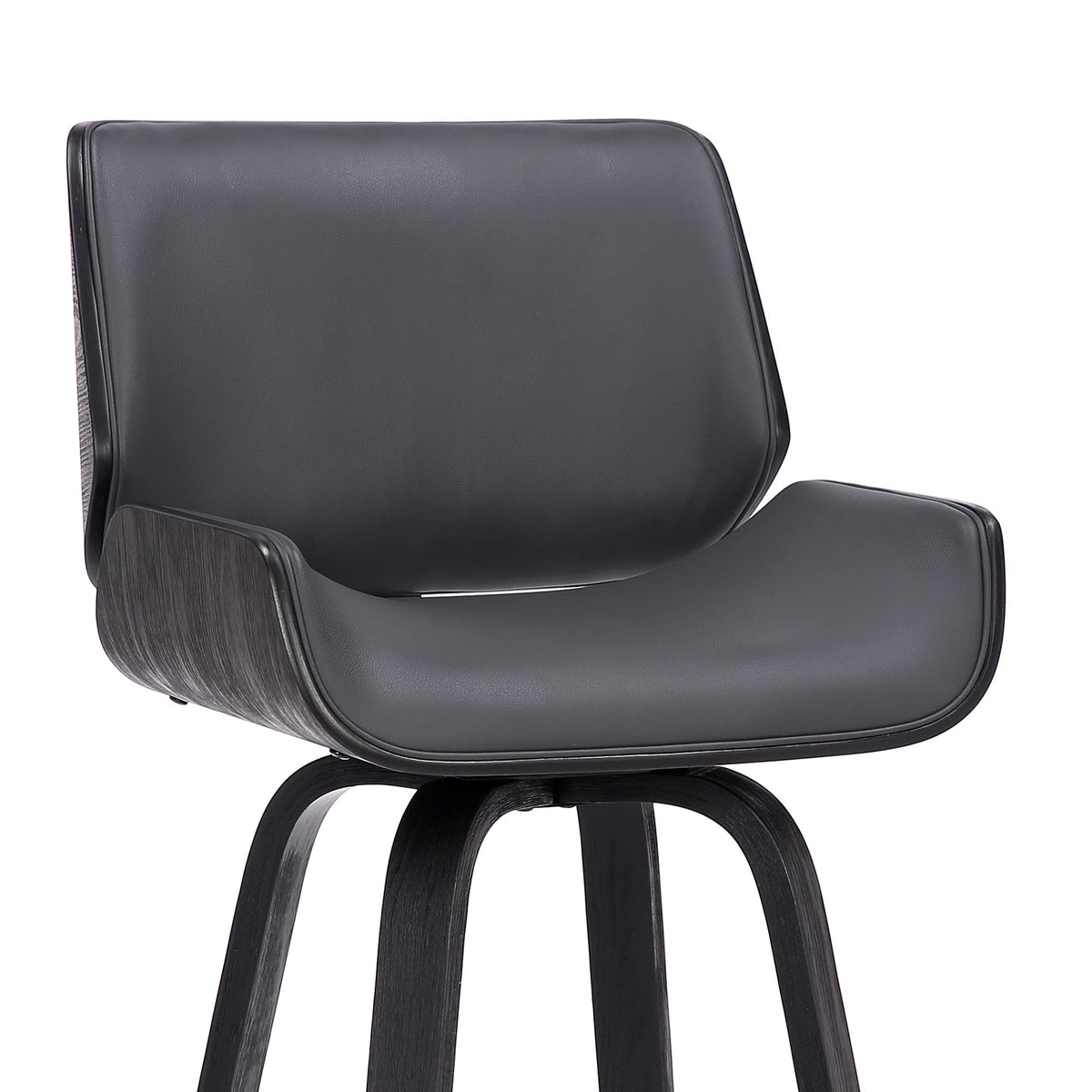 Add some mid-century modern flair to your home with the Armen Living Tyler 30'; Swivel Gray Faux Leather and Black Wood Bar Stool! Featuring a retro style silhouette, the Tyler bar stool showcases function, convenience, and timeless beauty. The 360 degree swivel functionality gives you the mobility you need when sitting or entertaining and allows you to easily engage with any of your guests regardless of their place in the room. An ideal addition to your kitchen peninsula or island, home bar or pub table, the Tyler's high-density foam cushion and chrome ring footrest keep you comfortably seated. The Tyler kitchen stool can easily integrate into any home regardless of style theme and features multiple color options such as cream or brown faux leather upholstery with a walnut finish or gray faux leather with a black finish. The Tyler Bar or Counter Stool is available in your choice of 26'; or 30'; seat height options.FeaturesProduct Dimensions: W: 20 x D: 20 x H: 41.5 x Seat H: 30 Swivel Function: 360-degree smooth glide swivel allows you to change directions with ease Color Options: A unique variety of color and finish options available Built to Last: These stools provide stability with their strong metal 4-leg base, giving you a stable foundation that will always offer optimal comfort Seat Height Options: This Stool is conveniently offered in 26'; or 30'; seat height Simple Assembly: Clear step-by-step instructions ensure quick and easy setup Quality Assurance: Armen Living proudly provides 1-year limited manufacturer warranty for your peace of mind Quality Assurance: Armen Living proudly provides 1-year limited manufacturer warranty for your peace of mindDimensions:Bar StoolAssembled Product: 20 inches wide x 20 inches deep x 42 inches high Seat Width: 15 inches Seat Depth: 17 inches Seat Height: 30 inches Back Height: 12.25 inches Weight Capacity: 250 poundsArmen Living leads in modern furniture design and manufacturing, providing end-to-end solutions globally. We exceed client expectations with speed and flexibility, delivering exceptional products with reliability and innovation. Based in Southern California, our distribution center serves retailers, designers, and hospitality providers worldwide. Offering a wide range of designs, including originals, we're a trusted resource for stylish modern furniture, committed to quality and customer satisfaction.