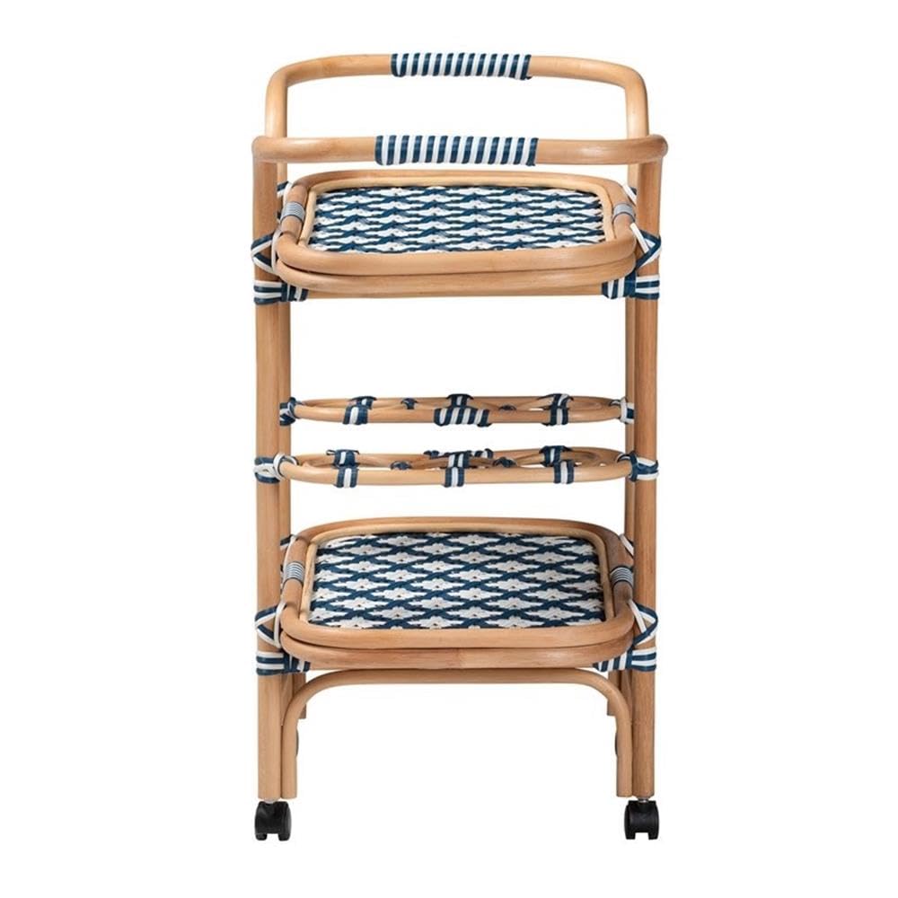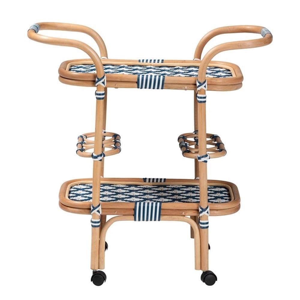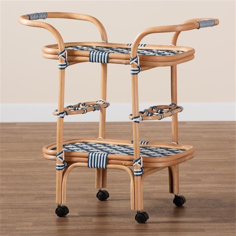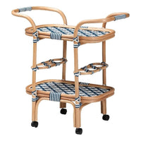 bali & pari Chasca Wood & Natural Rattan Wine Cart in Blue and White