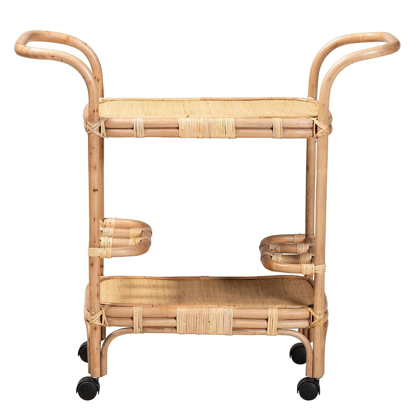 bali & pari Hadia 2-Shelf Natural Rattan Wine Cart, Natural/Black (236-12722-HiT)