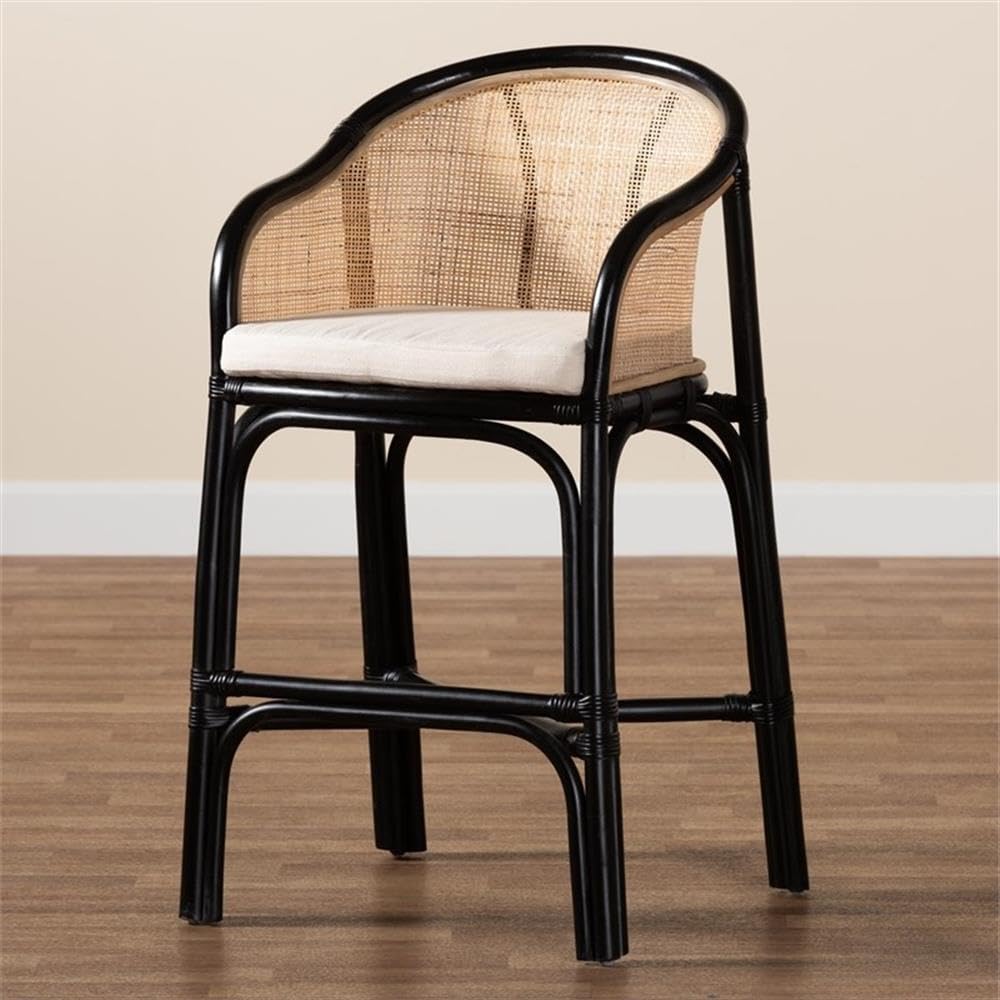 bali & pari Miranda Bohemian Natural Rattan Counter Stool, Black/Natural/Off-White (235-13347-HiT)