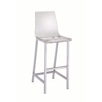 Update your decor with the intriguing design of this modern bar stool. Its contemporary aesthetic is truly pleasing to the eye. Constructed from metal, it has a sleek silhouette that's livened up with clear acrylic accents. Its long, sleek legs boast a gleaming finish of chrome, balancing out its striking appearance with a pleasing hint of polish. A wide back and convenient foot pedestal provide comfy support for your back and feet.