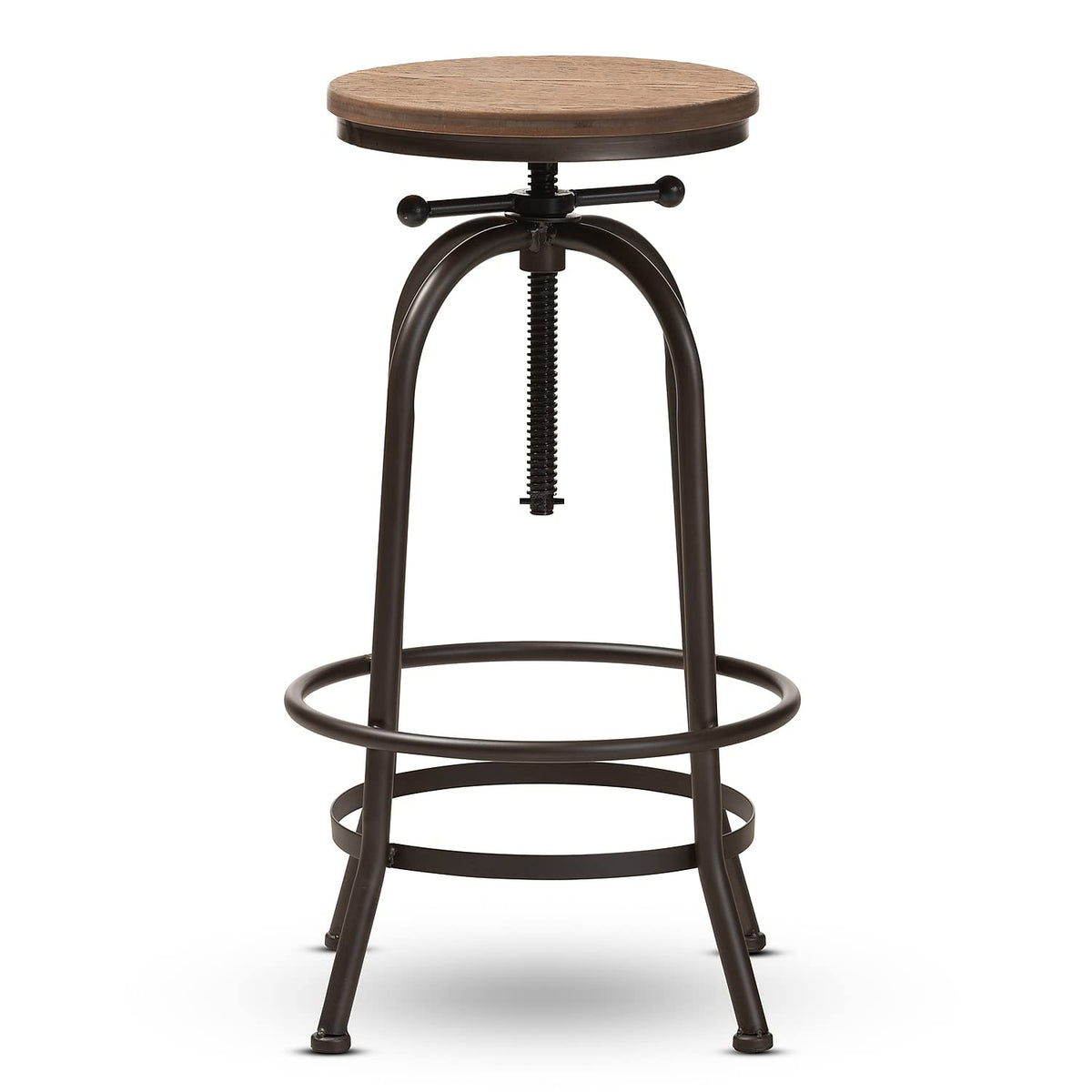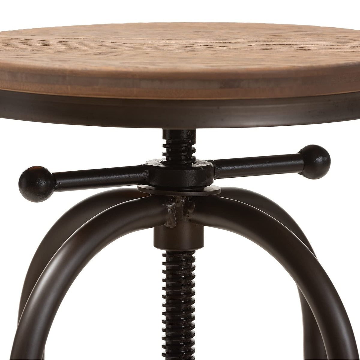 Baxton Studio Aline Vintage Rustic Industrial Style Wood and Rust-Finished Steel Adjustable Swivel Bar Stool