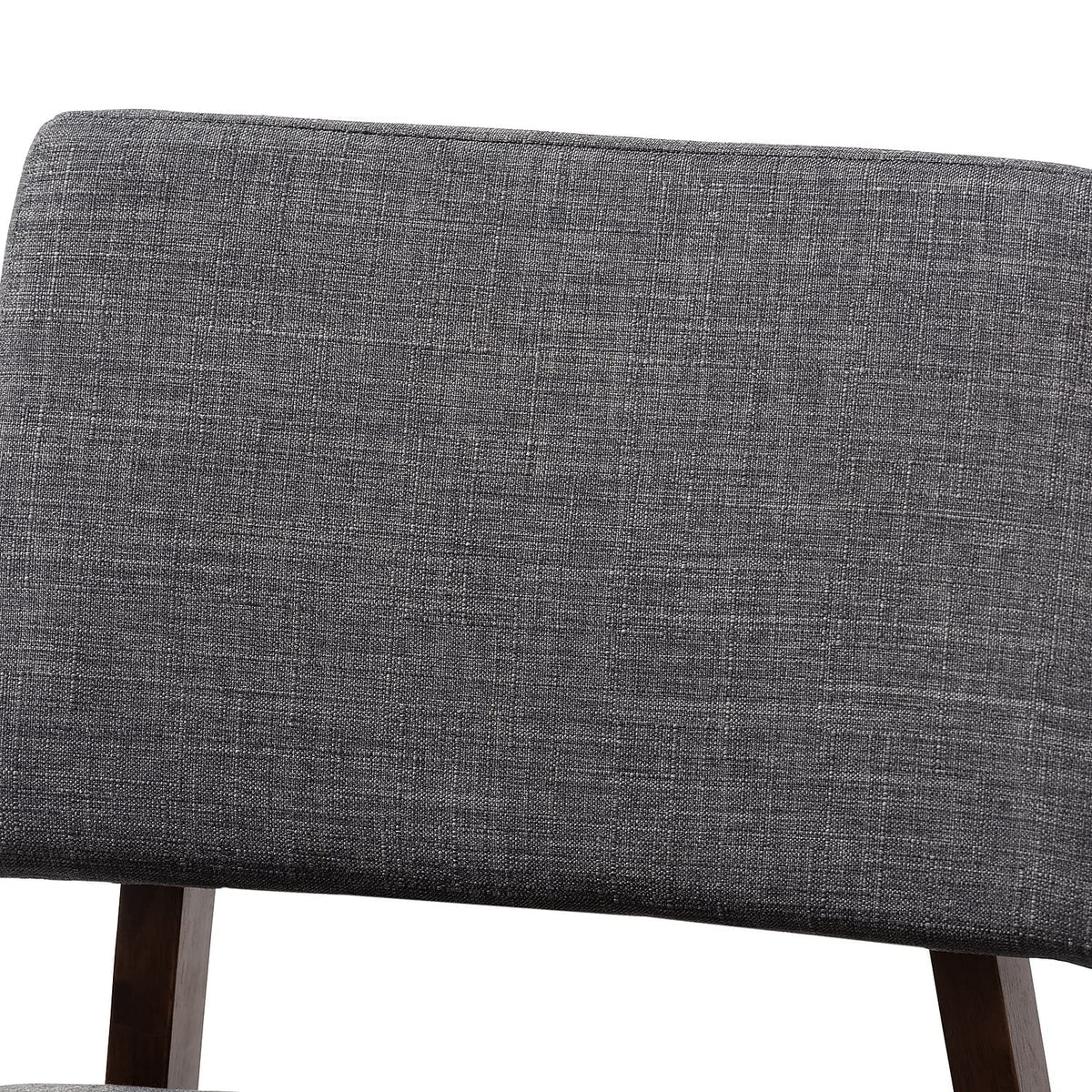 Baxton Studio Colton Mid-Century Modern Dark Gray Fabric Upholstered and Walnut-Finished Wood Bar Stool Set of 2