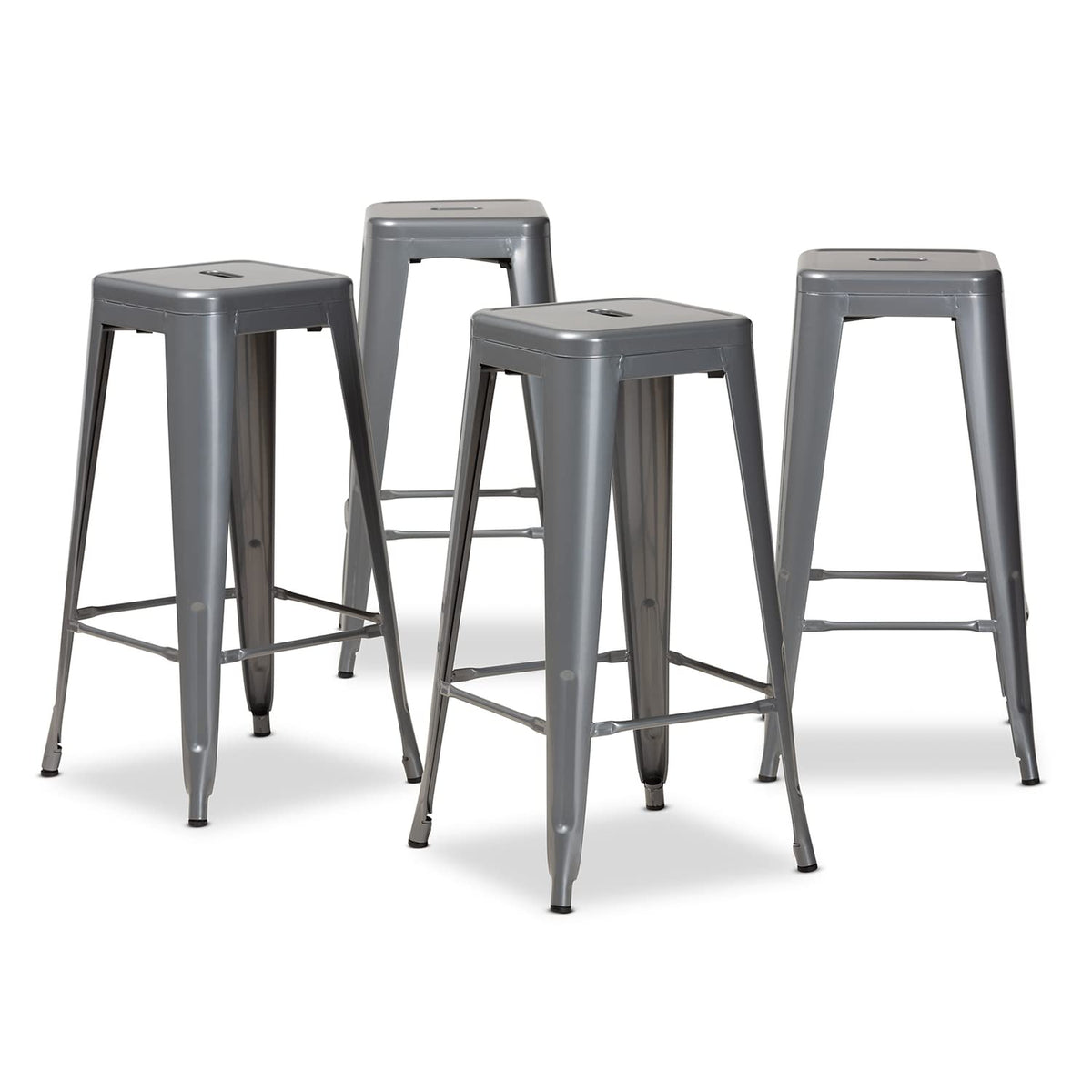 Baxton Studio Horton Grey Finished Metal 4-Piece Stackable Bar Stool Set
