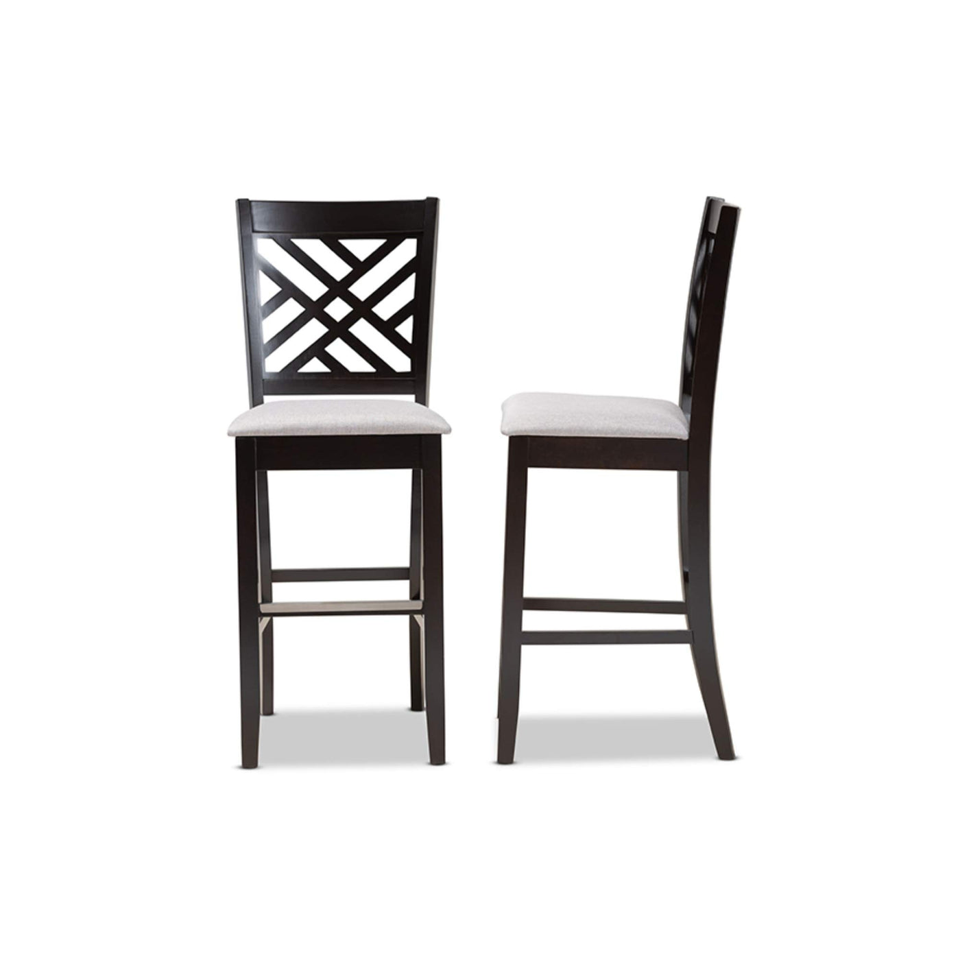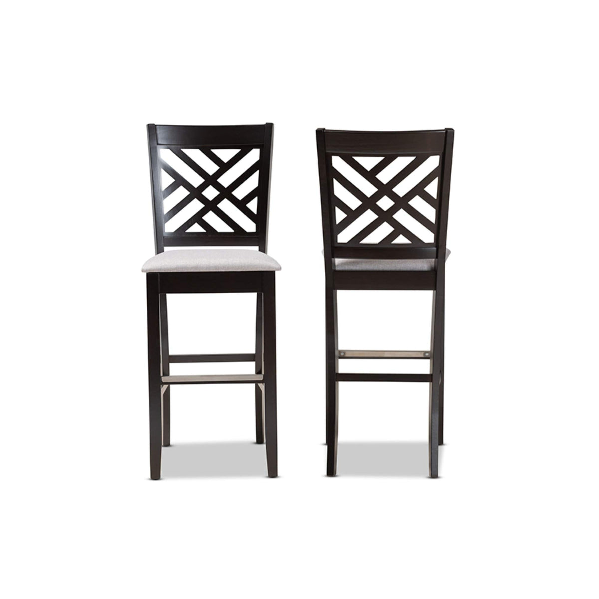 Baxton Studio Jason Modern and Contemporary Grey Fabric Upholstered and Espresso Brown Finished Wood 2-Piece Bar Stool Set