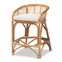 Baxton Studio Maverick Modern Bohemian White Fabric Upholstered and Natural Brown Rattan Counter Stool