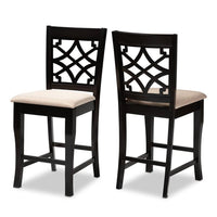 Baxton Studio Nisa Modern and Contemporary Sand Fabric Upholstered Espresso Brown Finished 2-Piece Wood Counter Stool Set Set