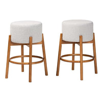 Baxton Studio Olwen Modern Japandi Light Grey Boucle Fabric And Walnut Brown Finished Wood 2-Piece Bar Stool Set