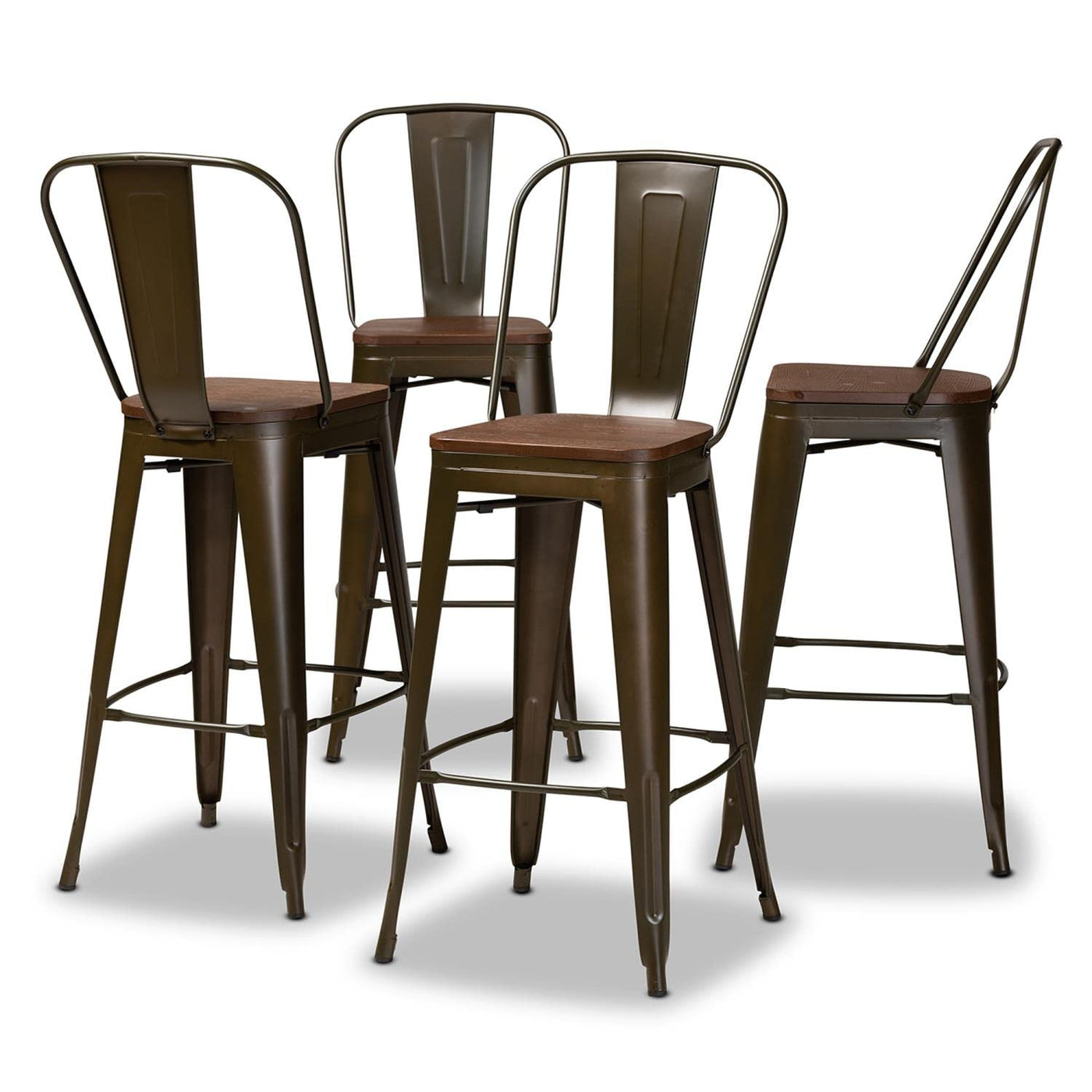 Baxton Studio Rosetta Brown Metal and Brown Finished Wood 4-Piece Bar Stool Set