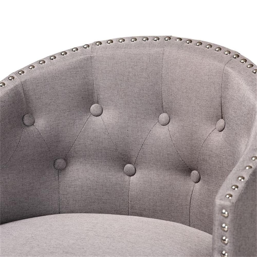 Bring happy hour to your home with the elegant Theron counter stool. Made in Malaysia, this mid-century inspired piece consists of a solid wood frame padded with foam and upholstered in soft fabric. Its curved backrest is adorned with an elegant button-tufted design and outlined with a graceful nail head trim that radiates classic refinement. The Theron requires assembly and is equipped with convenient footrests on each side for accommodating comfort. Complete with swivel capability, the Theron counter stool is a superb addition to any space.