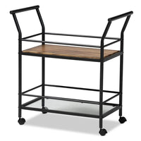 Baxton Studio Valora Industrial Rustic Walnut Finished Wood and Black Metal 2-Tier Mobile Wine Cart