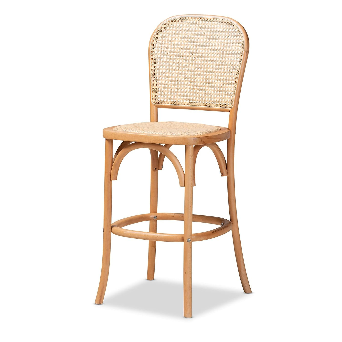 Baxton Studio Vance Mid-Century Rattan Back Counter Stool, Beige and Natural (195-12384-HiT)
