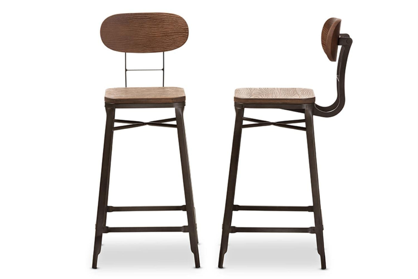 Baxton Studio Varek Vintage Rustic Industrial Style Bamboo and Rust-Finished Steel Stackable Counter Stool Set