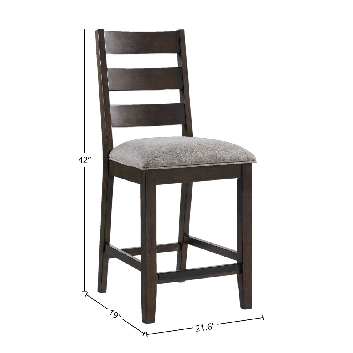 Experience both comfort and style with the Beacon Ladder Back Counter Stools with Cushion, Set of 2 in Black & Walnut. These bar stools are part of the Beacon Dining Collection, a simple yet stylish two-toned group that includes 3 sizes of dining tables with matching chairs and counter height stools. The ergonomically shaped ladder chair backs were designed for maximum comfort, while the comfortable cushion seats with light gray endurance fabric and web cushion seating add to the stool's overall comfort. The stretchers and footrest are added for strength and durability.FeaturesErgonomically shaped ladder chair backs designed for maximum comfort Equipped with durable light gray endurance fabric cushions Features comfortable web cushion seating Stretchers and footrest provide added strength and durability Complement your space with additional pieces from our Beacon collection (sold separately) Two-toned black and walnut finish suitable for all decor styles Comes in a set of 2 counter-height stools for your convenienceDimensionsAssembled Product: 21.6 inches wide x 19 inches deep x 42 inches high Seat Height: 24 inches Weight Capacity: 300 poundsIntercon was established in 1976 and has become an industry leader in designing, marketing and manufacturing wood dining, bedroom and home entertainment furniture. It has been a family owned and operated business for over forty years. Our design and warehouse capabilities allow us to be a leading provider of furniture throughout the United States and Canada. It is our mission to offer our customers superior quality products with lasting value.