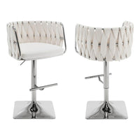 Introducing the BS149-BS158 Adjustable Height Swivel Bar Stools from Best Quality Furniture, where elegance meets functionality to redefine your home bar or kitchen island experience. These luxurious bar stools are available in a stunning array of five captivating colors, including Velvet Dark Gray, Velvet Black, Velvet Cream, Velvet Emerald Green, and Faux Leather White. Each meticulously designed to complement any interior decor. Choose between two exquisite iron square-shaped base options: the sleek and modern Silver Chrome or the opulent Gold Chrome finish, elevating the ambiance of your space with effortless style. Experience seamless movement with the swivel feature, allowing for a full 360-degree rotation for easy interaction and access. Say goodbye to cumbersome repositioning and hello to smooth transitions as you navigate your space with grace. Designed for ultimate comfort, these bar stools boast a sleek footrest design seamlessly integrated into the base, providing additional support without compromising on style. Plus, the hand-woven back design adds a touch of artisanal elegance, making these stools stand out as true statement pieces in any room. Crafted with the utmost attention to quality and durability, the BS149-BS158 Adjustable Height Swivel Bar Stools from Best Quality Furniture are more than just furniture; they are a testament to luxury and refinement. Elevate your home entertainment experience with these exquisite stools, where elegance and functionality harmonize perfectly.