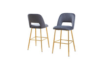 Introducing the epitome of style and comfort, Best Quality Furniture Gold Chrome Velvet Upholstery Bar Stools (Set of 2). Elevate your home bar or kitchen counter with these exquisite barstools, designed to enhance both the aesthetics and functionality of your space. Crafted with meticulous attention to detail, each barstool features sleek and sturdy iron legs with a lustrous gold chrome finish, adding a touch of elegance and modernity to any room. The luxurious velvet upholstery, available in four sophisticated colors; dark grey, navy blue, black, and cream. Offers both plush comfort and timeless style. Designed for versatility and convenience, these barstools come as a set of two, making them perfect for entertaining guests or enjoying intimate meals with loved ones. The inclusion of adjustable levelers ensures stability on any surface, while the small opening on the bottom of the chair back adds a subtle yet distinctive design element.