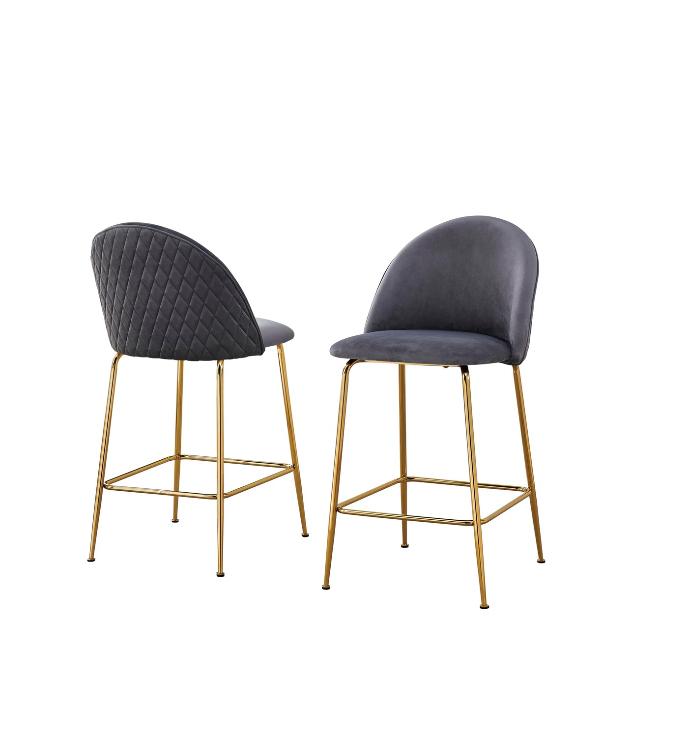 Best Quality Furniture Dark Gray Velvet Counter Height Stool With Gold Legs (Set Of 2)