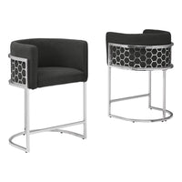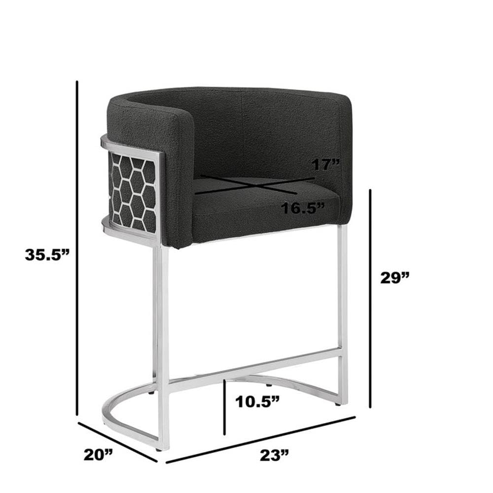 Best Quality Furniture Modern Barrel Bar Stools with Honeycomb Pattern, Teddy Fabric Upholstery - Black, Silver Chrome Finish