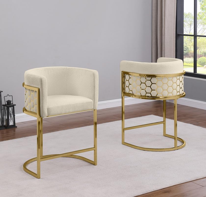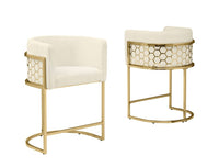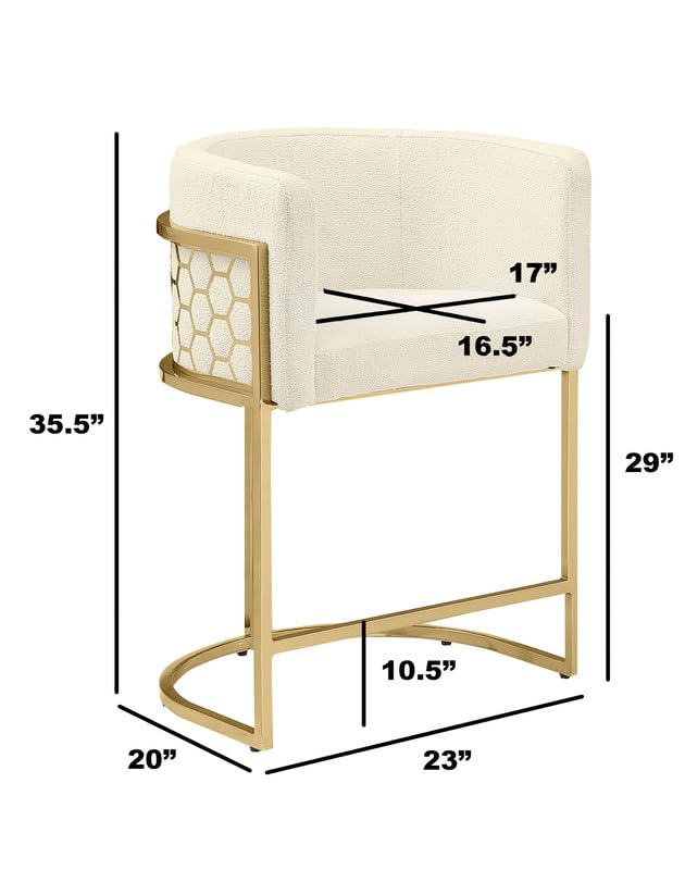 Best Quality Furniture Modern Barrel Bar Stools with Honeycomb Pattern, Teddy Fabric Upholstery - Cream, Gold Chrome Finish