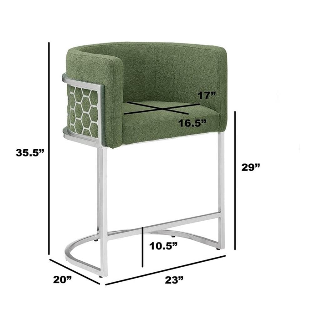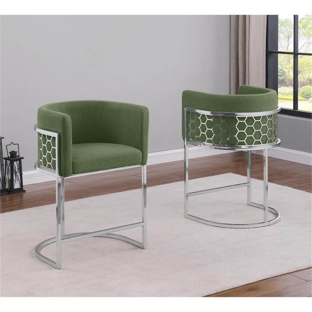 Best Quality Furniture Modern Barrel Bar Stools with Honeycomb Pattern, Teddy Fabric Upholstery - Green, Silver Chrome Finish