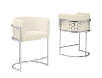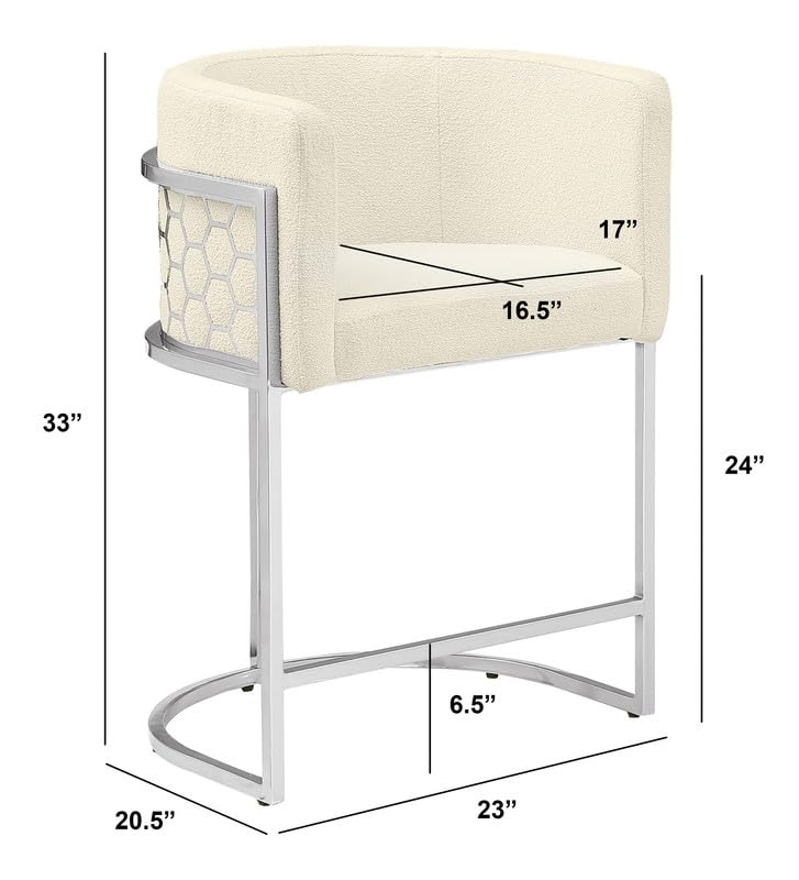 Best Quality Furniture Modern Barrel Counter Height Stools with Honeycomb Pattern, Teddy Fabric Upholstery - Cream, Silver Chrome Finish