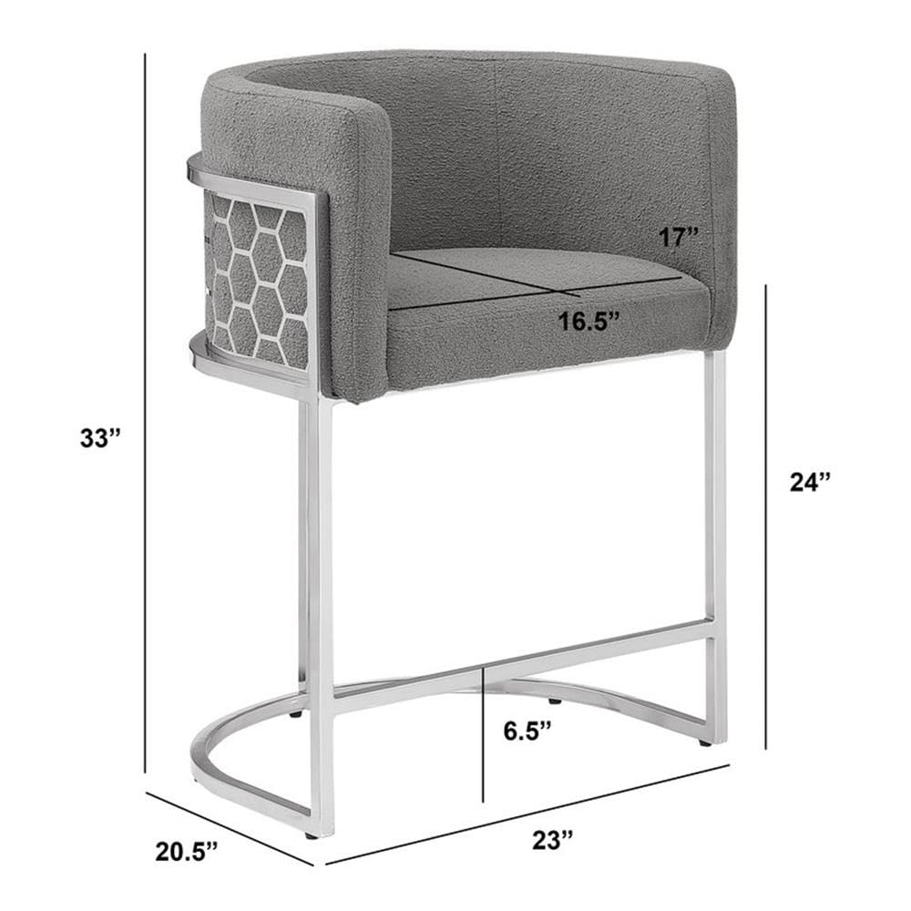 Best Quality Furniture Modern Barrel Counter Height Stools with Honeycomb Pattern, Teddy Fabric Upholstery - Dark Gray, Silver Chrome Finish