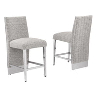 Best Quality Furniture Modern Upholstered Bar Stool Set Of 2 ?Boucle Fabric In Rich Gray ?Matte Brushed Chrome Legs In Silver ?Perfect For Dining Room Or Living Room