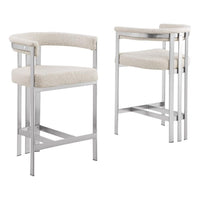 Best Quality Furniture Modern Upholstered Counter Height Stool With Cream Boucle Fabric ?Matte Brushed Chrome Legs In Silver ?Versatile Living Room & Dining Room Seating ?Set Of 2