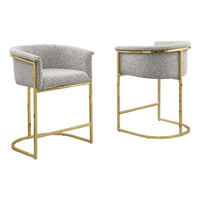 Best Quality Furniture Set Of 2 Modern Boucle Fabric Accent Bar Stools - Barrel Design, Chrome Legs, Rich Gray, Gold Leg Finish