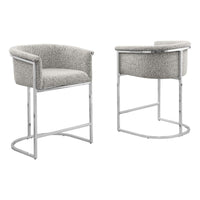Best Quality Furniture Set Of 2 Modern Boucle Fabric Accent Bar Stools - Barrel Design, Chrome Legs, Rich Gray, Silver Leg Finish