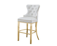 Best Quality Furniture Upholstered Button Tufted Barstools With Gold Stainless Steel Legs