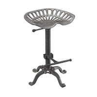 Tractor Seat Industrial Bar Stool. Modeled after a Vintage Tractor Seat, our iron tractor seat industrial bar stool sits top a claw-footed base for a great rustic look and feel. Industrial Powder Coated finish Detailed legs Seat is a replica of a tractor seat Seat adjusts from 22" - 33" H Some Assembly Required Sold Individually. Product Materials: Cast Iron. Assembled Dimensions: 18.75"L x 14.25"W x 22.5 - 33.5"H; Weight: 32 lbs