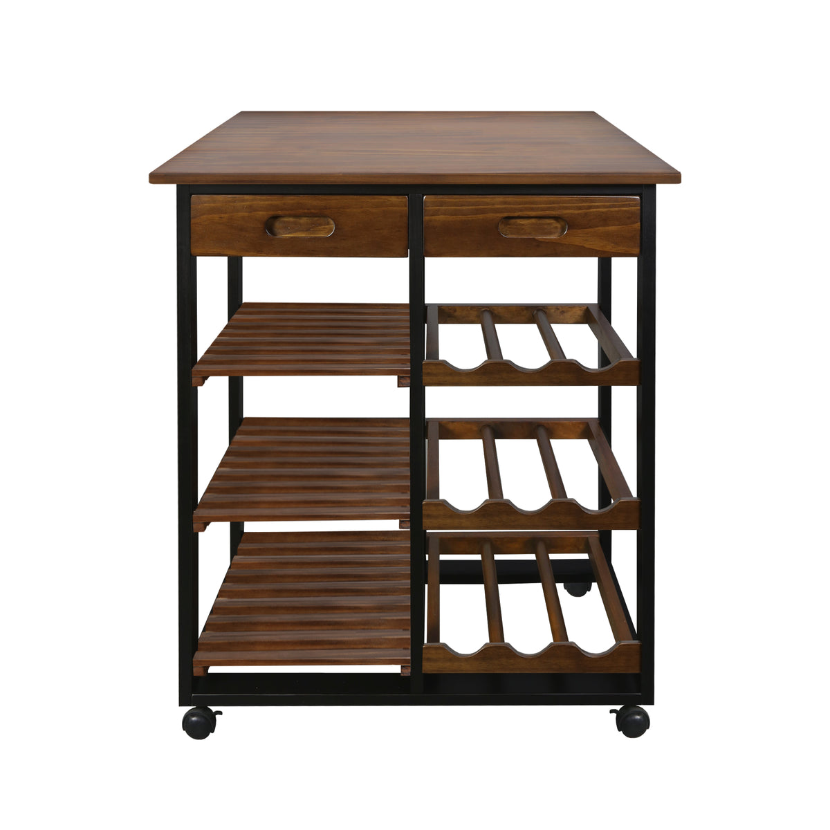 Casual Home Solid Wood 28" Wide L 4-Tier Rolling Kitchen Island Trolley With Wine Rack And Drawer, Mocha/Black