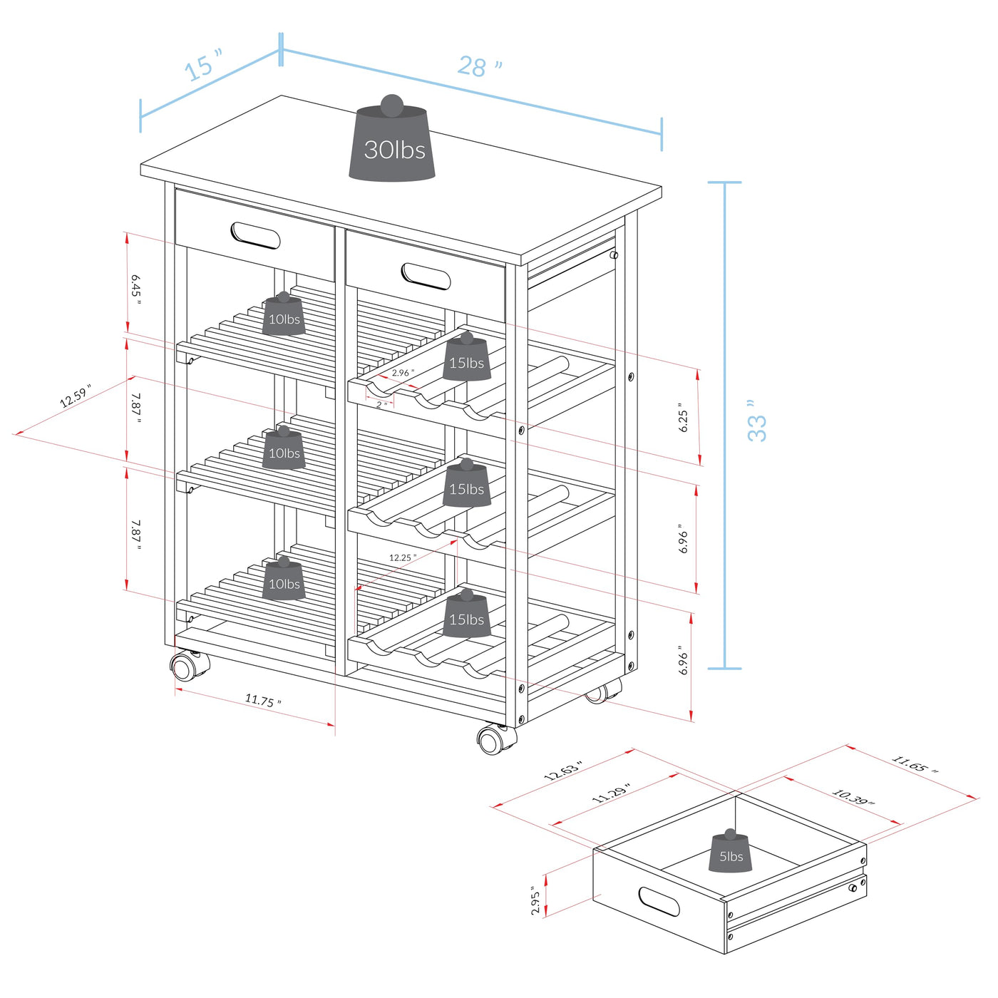 Introducing the Solid Wood 28" Wide Rolling Kitchen Island Trolley with Wine Rack and Drawer: Elevate Your Wine Experience! Indulge in the art of wine appreciation with our exquisite Kitchen Island Trolley, a sophisticated addition to your home or business that will captivate both enthusiasts and novices alike. Perfectly blending elegance and functionality, our wine cart is designed to enhance your wine-tasting journey and impress your guests with every pour.