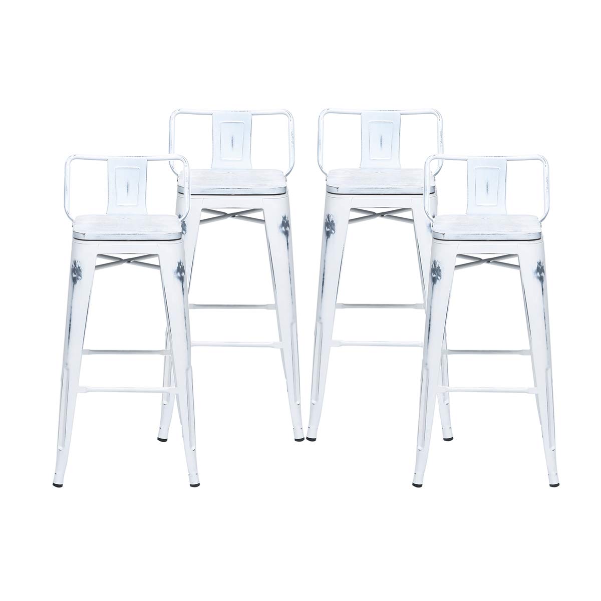 Changjie Furniture 24 Inch Bar Stools Counter Height Bar Stools Industrial Metal Barstools Set Of 4 For Home Kitchen (24 Inch, Distressed White)