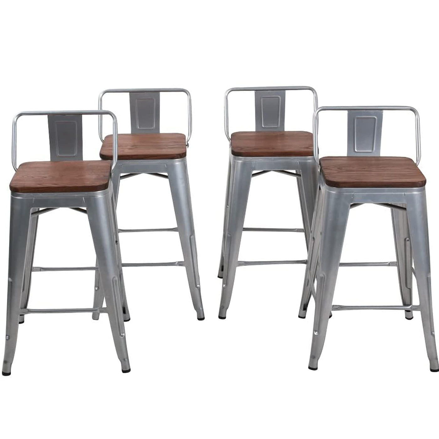 Changjie Furniture 24 Inch Bar Stools Set Of 4 Industrial Metal Barstools Counter Height Bar Stool With Backs For Home Kitchen (24 Inch, Silver)