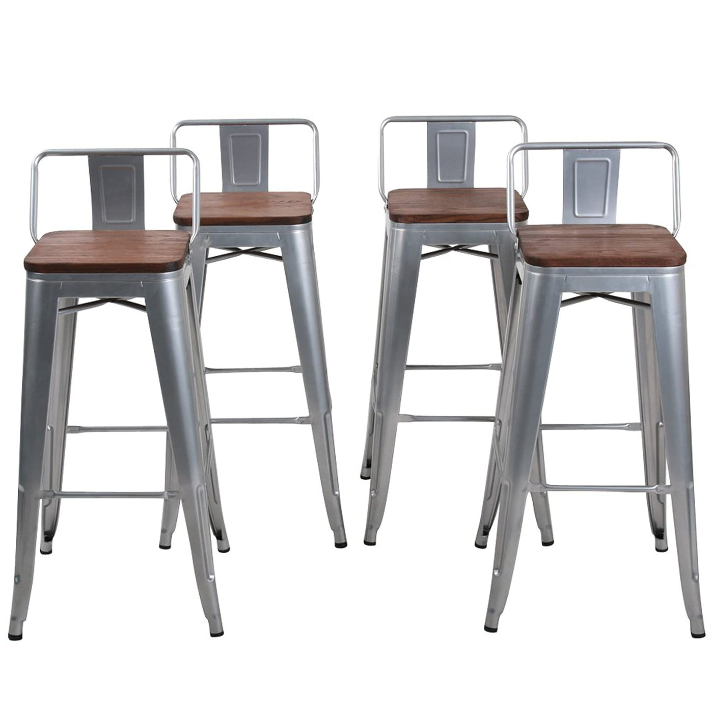 Changjie Furniture 30 Inch Bar Stools Set Of 4 Industrial Metal Barstools Bar Height Bar Stool With Backs For Home Kitchen (30 Inch, Silver)