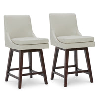 Chita Counter Height Swivel Bar Stools With Back Set Of 2, Fsc Certified Upholstered Faux Leather Swivel Barstool, 26.8' H Seat Height, Pu Leather In Creamy Gray