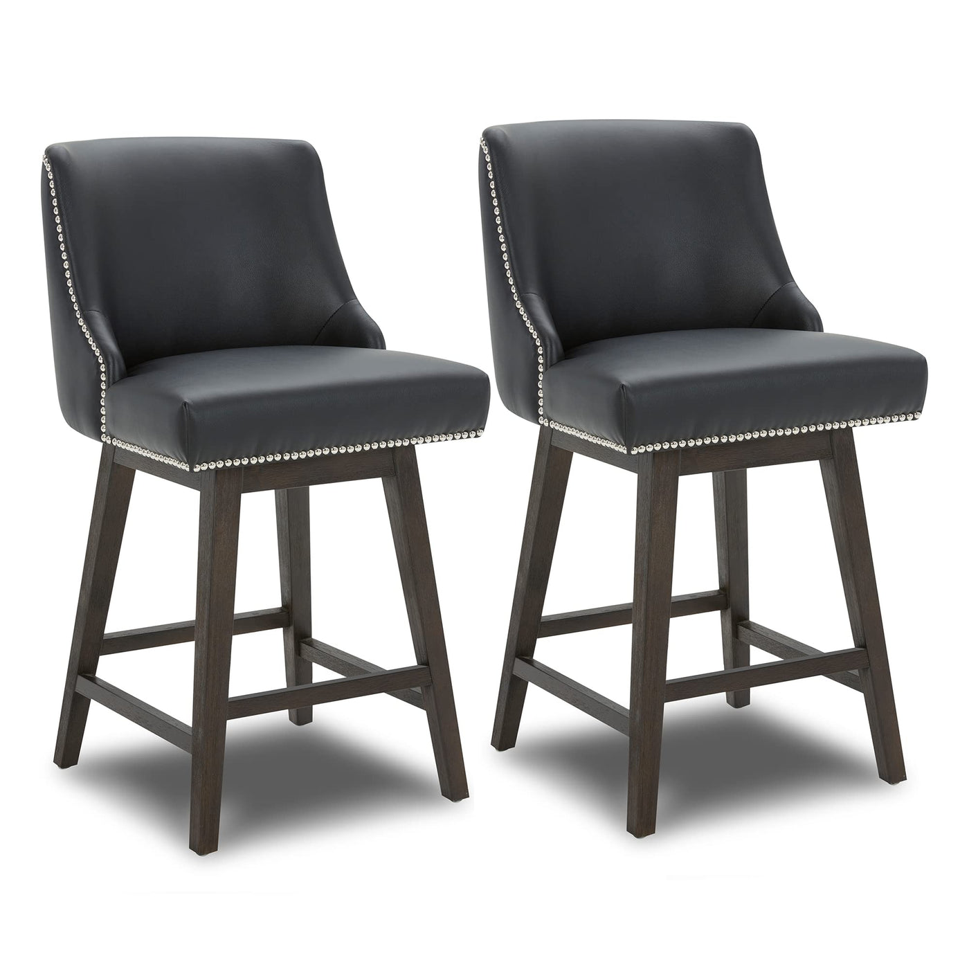 Chita Counter Height Swivel Barstools, Fsc Certified 26' H Seat Height Upholstered Bar Stools Set Of 2, Faux Leather In Black