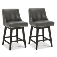Chita Counter Height Swivel Barstools, Fsc Certified 26' H Seat Height Upholstered Bar Stools Set Of 2, Faux Leather In Retro Grey