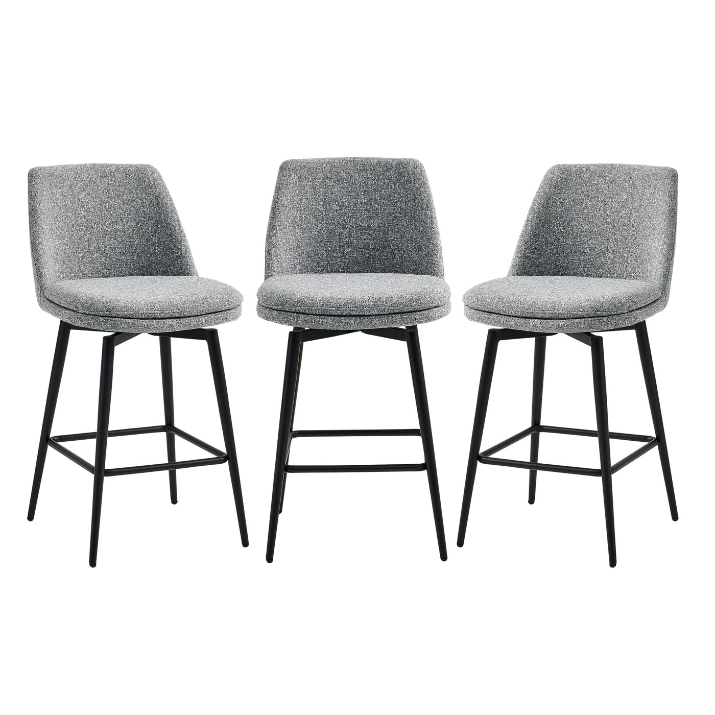 Italian Mid Century Swivel Design - A Lightly Curved Back And A Rounded, Padded Seat Create This Mid-Century Look Counter Height Stool. 360-Degree Swivel Plate Maximizes Your Comfort And Let You Be A Part Of Every Conversation. | Built To Last - Sturdy Iron Base In Uncomplicated Yet Modern Matte Black Finish. Weight Capacity: 300 Lbs. | Easy To Clean - Upholstered In Soft And Textured Fabric Which Is Easy To Clean And Oeko-Certified. Formaldehyde Is Not Detected In Our Fabric. | Specifications - Set Of 3. Overall Dimension: 22.4''D X 19.7''W X 37.8''H. Seat Dimension: 18.1''D X 19.7''W X 27.2''H. | Simple Assembly Required - If You Have Any Questions, Please Contact Our Professional Customer Support Team. We Will Give You A Satisfactory Solution.
