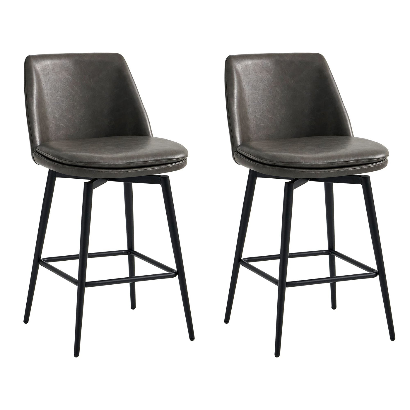 Chita Counter Height Swivel Barstools, Fsc Certified Upholstered Faux Leather Bar Stools Set Of 2, Metal Base, 27.2' Seat Height, Grey