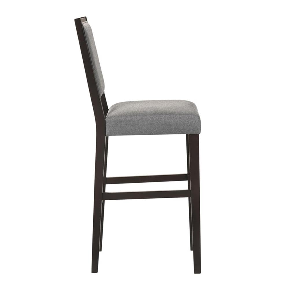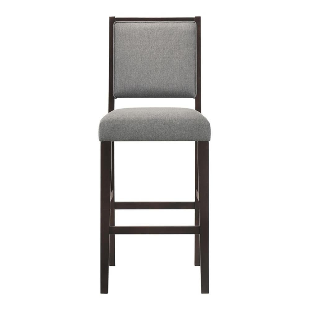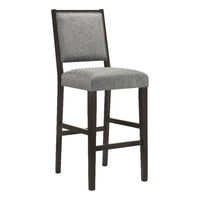 Outfit your at-home bar or kitchen island in understated style with this versatile bar stool. Made from high-quality wood finished in an espresso hue, it’s padded and upholstered with an grey, soft-textured polyester fabric that goes with most transitional and contemporary kitchen decor. Arrives in a set of two.