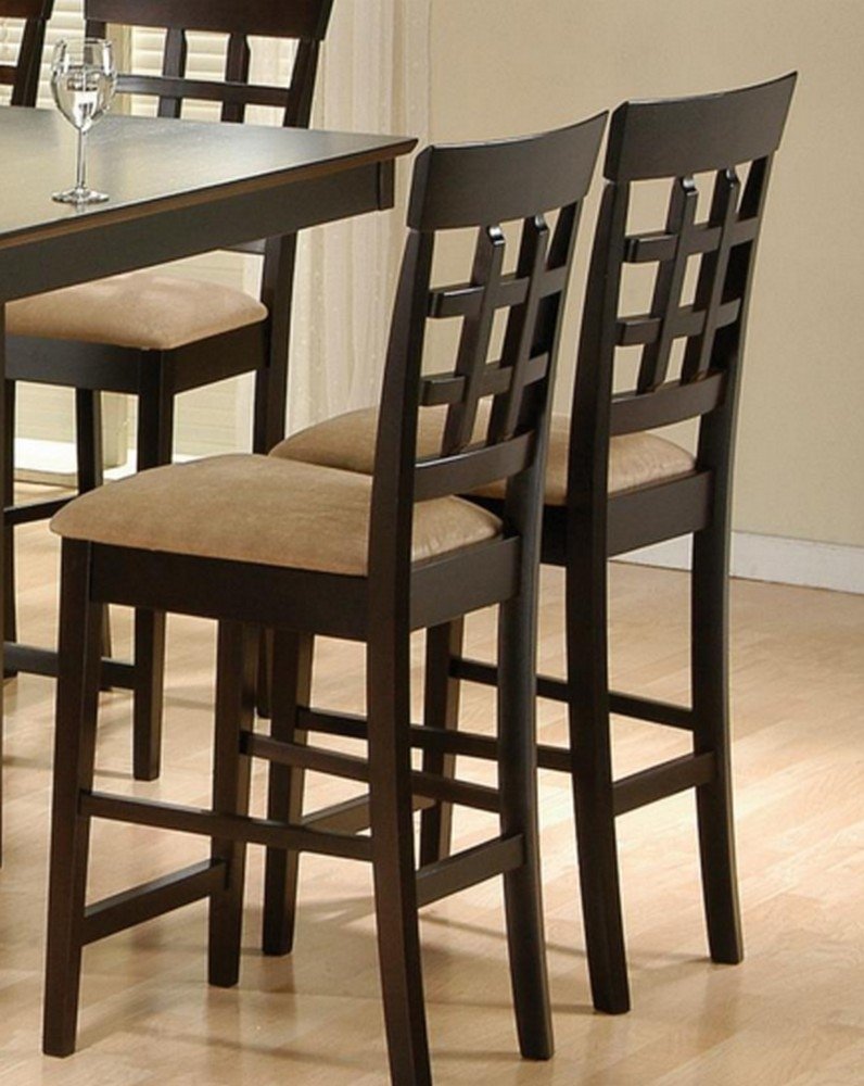 Coaster Home Furnishings 25-Inch Lattice Back Counter Height Pub Chair Bar Stool Barstool Microfiber Fabric Seat With Wood Frame, Set Of 2, Tan / Cappuccino