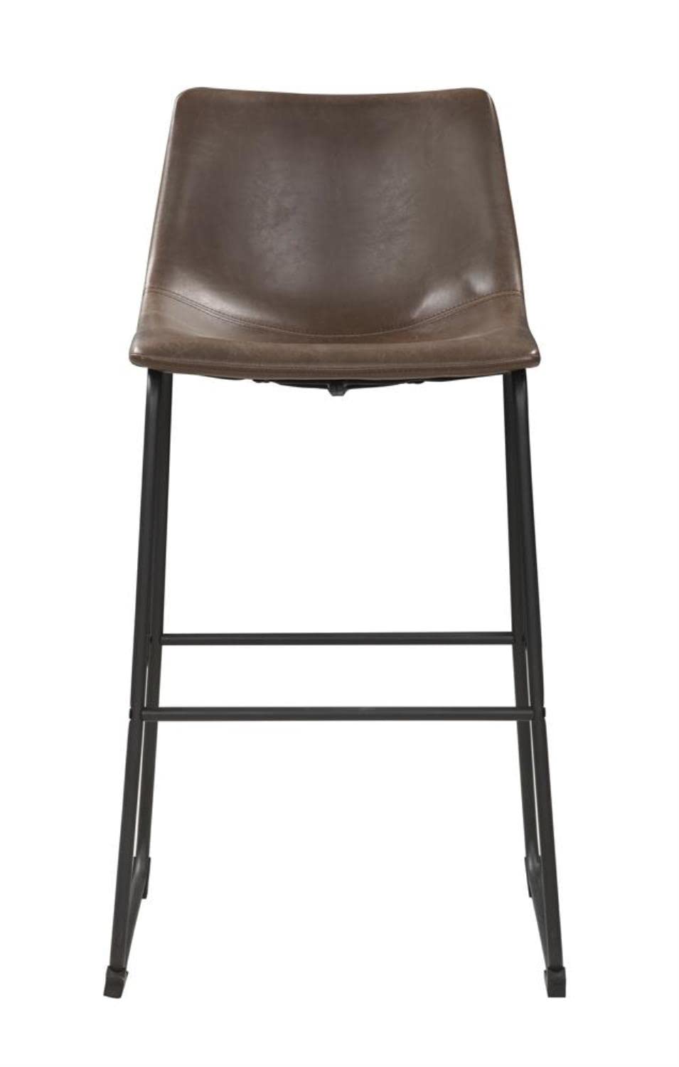 Coaster Home Furnishings 29-Inch Industrial Mid-Back Pub Height Chair Bar Stool Barstool PU Leather Seat with Metal Frame, Set of 2, Brown